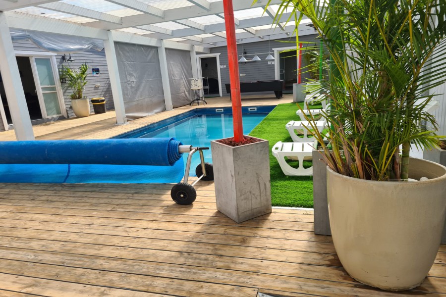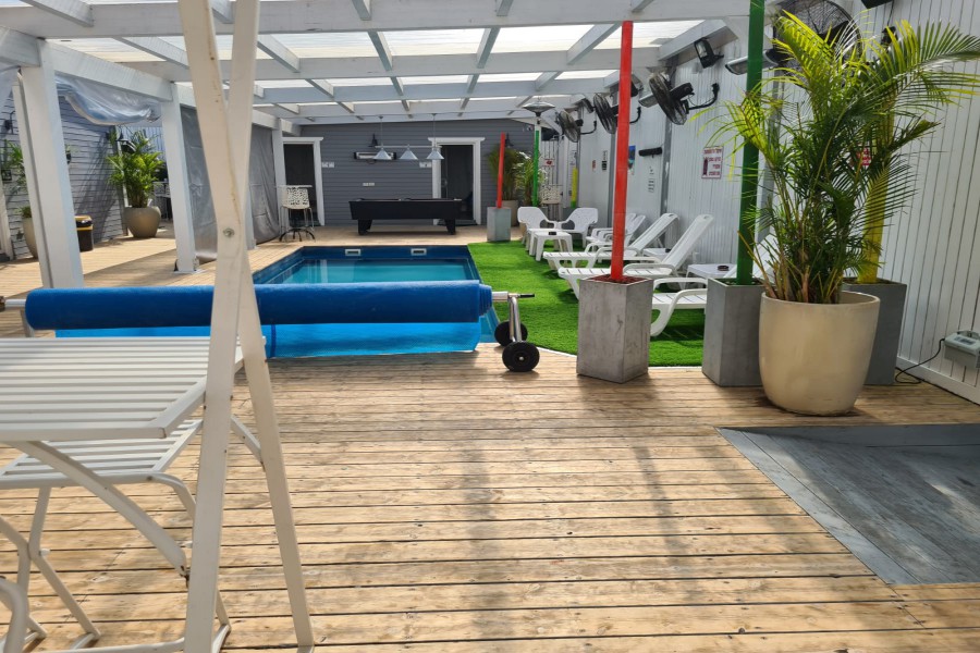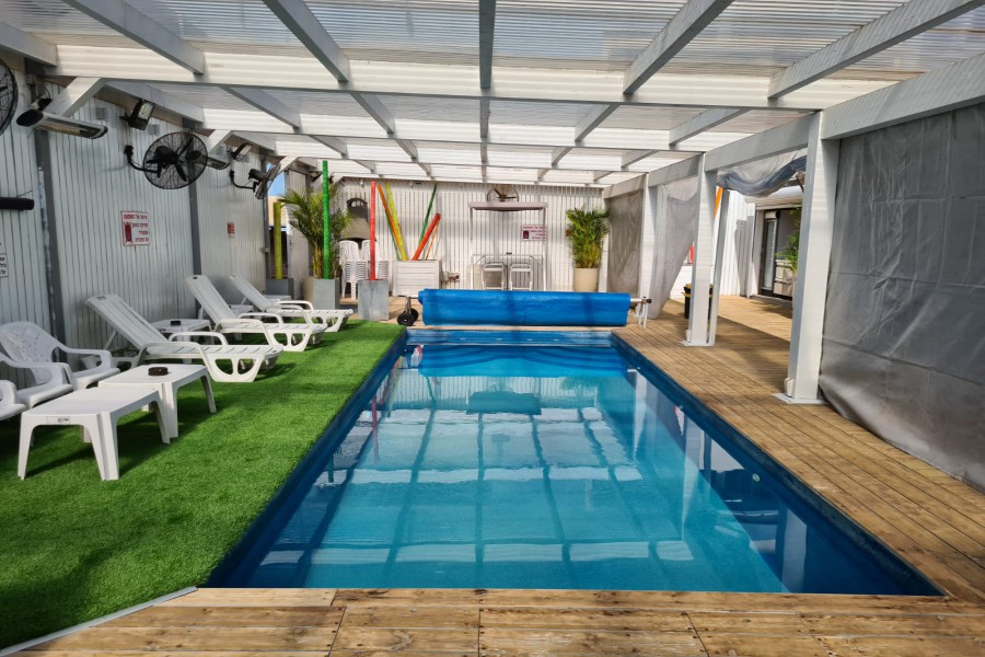 בריכת שחייה מרעננת המקורה ומחוממת. |