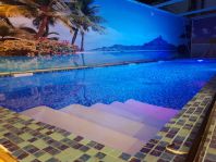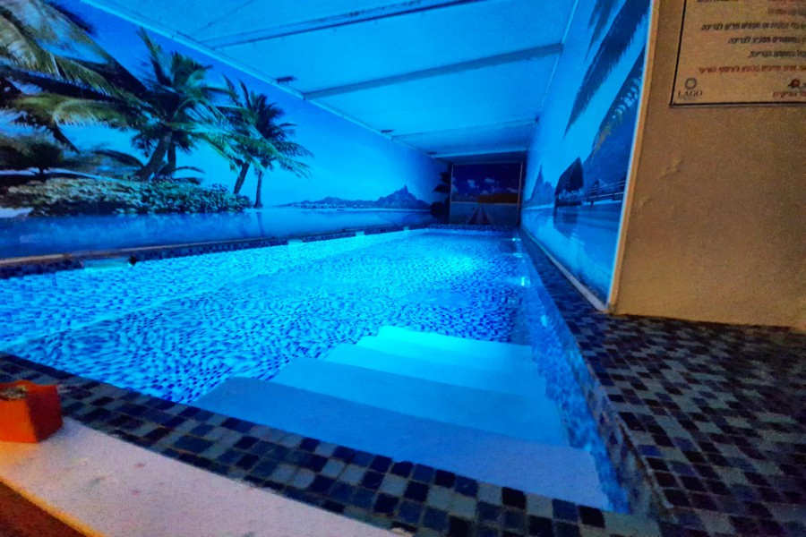בריכת שחייה מרעננת המקורה ומחוממת, יש אפשרות לפתוח את הגג |