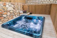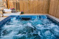 בריכת שחייה מרעננת לנופשים פרטית. ג`קוזי זרמים מרענן מול הנוף. דשא בחצר, פינת ישיבה צופה לנוף. |