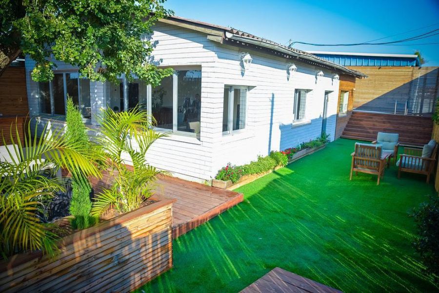 בחצר הגדולה תהנו מרגעי איכות ומנוחה ותהנו ממיטת שיזוף, דשא בחצר, מתקן bbq, תאורה לשעות החשכה, חניה פרטית צמודה, רהיטי גן, שימשית הצללה.
